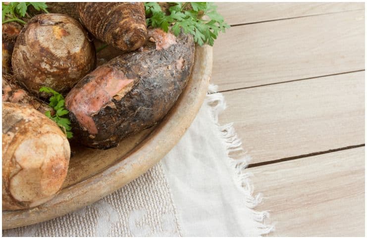 Yautia (Botanical name – Xanthosoma sagittifolium) is a nutrient-rich root that goes by many different names, including tannia, malanga, new cocoyam, cocoyam, and Japanese potatoes.
